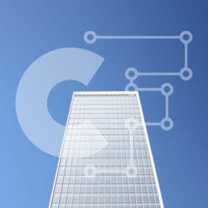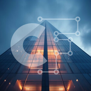 Intra Συλλεκτικό Ξύλινο Παζλ Plywood 4mm - Μοντέρνο γυάλινο κτήριο με μπλε ουρανούς και σύννεφα Σε Ξύλινο Κουτί - Διαστάσεις Puzzle: 10x10 cm – 25 κομμάτια
