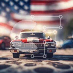 Intra Συλλεκτικό Ξύλινο Παζλ Plywood 4mm - Αυτοκίνητο παιχνίδι με αμερικανική σημαία για τους εορτασμούς της 4ης Ιουλίου Σε Ξύλινο Κουτί - Διαστάσεις Puzzle: 10x10 cm – 25 κομμάτια