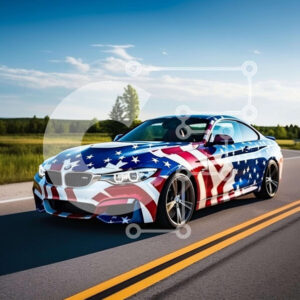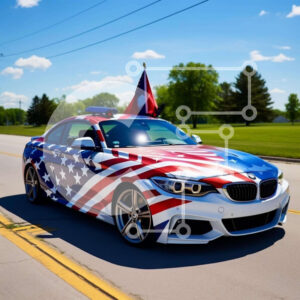 Intra Συλλεκτικό Ξύλινο Παζλ Plywood 4mm - Αυτοκίνητο BMW με αμερικανική σημαία που οδηγεί στο δρόμο Σε Ξύλινο Κουτί - Διαστάσεις Puzzle: 10x10 cm – 25 κομμάτια