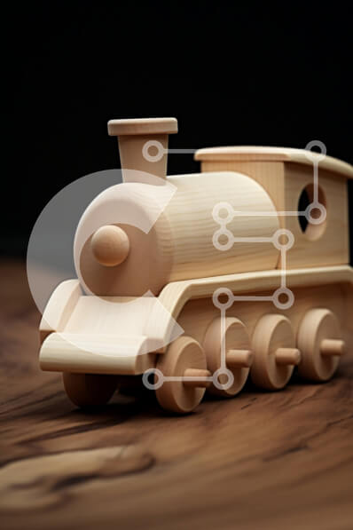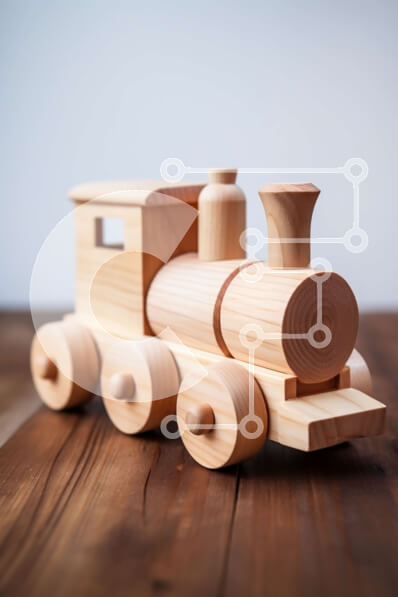 Intra Συλλεκτικό Ξύλινο Παζλ Plywood 4mm - Γοητευτική εικόνα ενός ξύλινου παιχνιδιού τρένου σε μια ρουστίκ ξύλινη επιφάνεια Σε Ξύλινο Κουτί - Διαστάσεις Puzzle: 10x10 cm – 25 κομμάτια