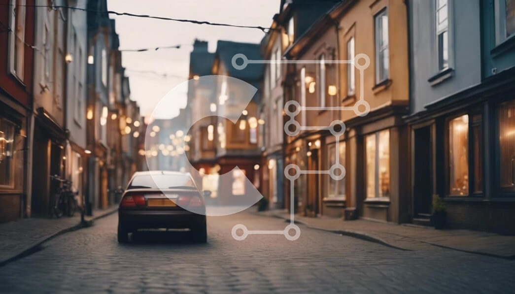 Intra Συλλεκτικό Ξύλινο Παζλ Plywood 4mm - Βραδινός δρόμος με αυτοκίνητο στην γραφική γειτονιά Σε Ξύλινο Κουτί - Διαστάσεις Puzzle: 10x10 cm – 25 κομμάτια
