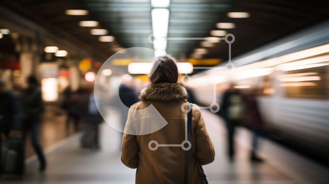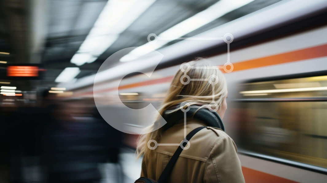 Intra Συλλεκτικό Ξύλινο Παζλ Plywood 4mm - Γυναίκα που περιμένει στο σταθμό του μετρό με θολό τρένο στο φόντο Σε Ξύλινο Κουτί - Διαστάσεις Puzzle: 10x10 cm – 25 κομμάτια