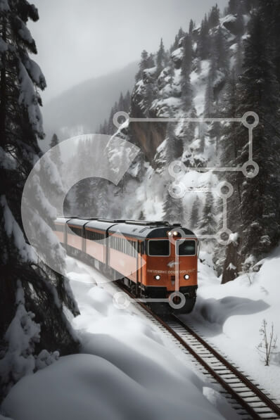 Intra Συλλεκτικό Ξύλινο Παζλ Plywood 4mm - Γραφική εικόνα ενός πορτοκαλί τρένου που ταξιδεύει μέσα από ένα χιονισμένο δάσος Σε Ξύλινο Κουτί - Διαστάσεις Puzzle: 10x10 cm – 25 κομμάτια