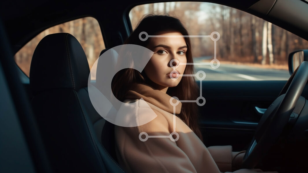 Intra Συλλεκτικό Ξύλινο Παζλ Plywood 4mm - Γυναίκα που οδηγεί στην εξοχή με μπεζ παλτό Σε Ξύλινο Κουτί - Διαστάσεις Puzzle: 10x10 cm – 25 κομμάτια