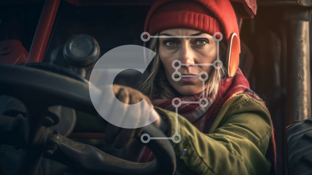 Intra Συλλεκτικό Ξύλινο Παζλ Plywood 4mm - Γυναίκα με κόκκινη κουκούλα και κασκόλ που οδηγεί τρακτέρ σε χωράφι Σε Ξύλινο Κουτί - Διαστάσεις Puzzle: 10x10 cm – 25 κομμάτια