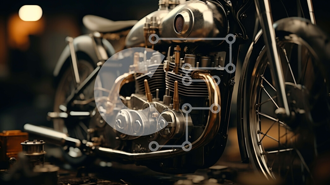 Intra Συλλεκτικό Ξύλινο Παζλ Plywood 4mm - Γυαλιστερή μεταλλική μοτοσυκλέτα με εργαλεία σε γκαράζ Σε Ξύλινο Κουτί - Διαστάσεις Puzzle: 10x10 cm – 25 κομμάτια