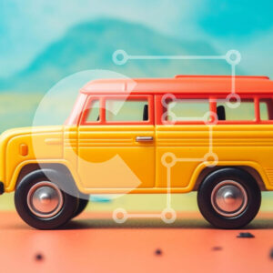 Intra Συλλεκτικό Ξύλινο Παζλ Plywood 4mm - Παιχνίδι κίτρινο βαν σε πορτοκαλί φόντο Σε Ξύλινο Κουτί - Διαστάσεις Puzzle: 10x10 cm – 25 κομμάτια