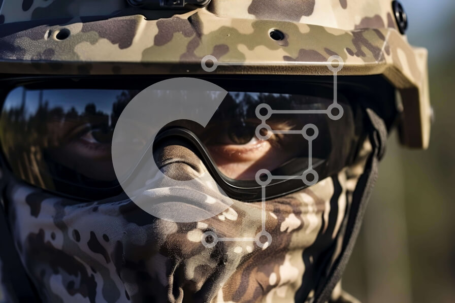 Intra Συλλεκτικό Ξύλινο Παζλ Plywood 4mm - Άνδρας με στρατιωτική στολή με μάσκα προσώπου παραλλαγής και γυαλιά Σε Ξύλινο Κουτί - Διαστάσεις Puzzle: 10x10 cm – 25 κομμάτια
