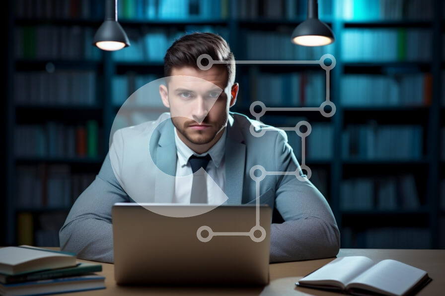 Intra Συλλεκτικό Ξύλινο Παζλ Plywood 4mm - Άνδρας που εργάζεται στον υπολογιστή στην καρέκλα γραφείου Σε Ξύλινο Κουτί - Διαστάσεις Puzzle: 10x10 cm – 25 κομμάτια