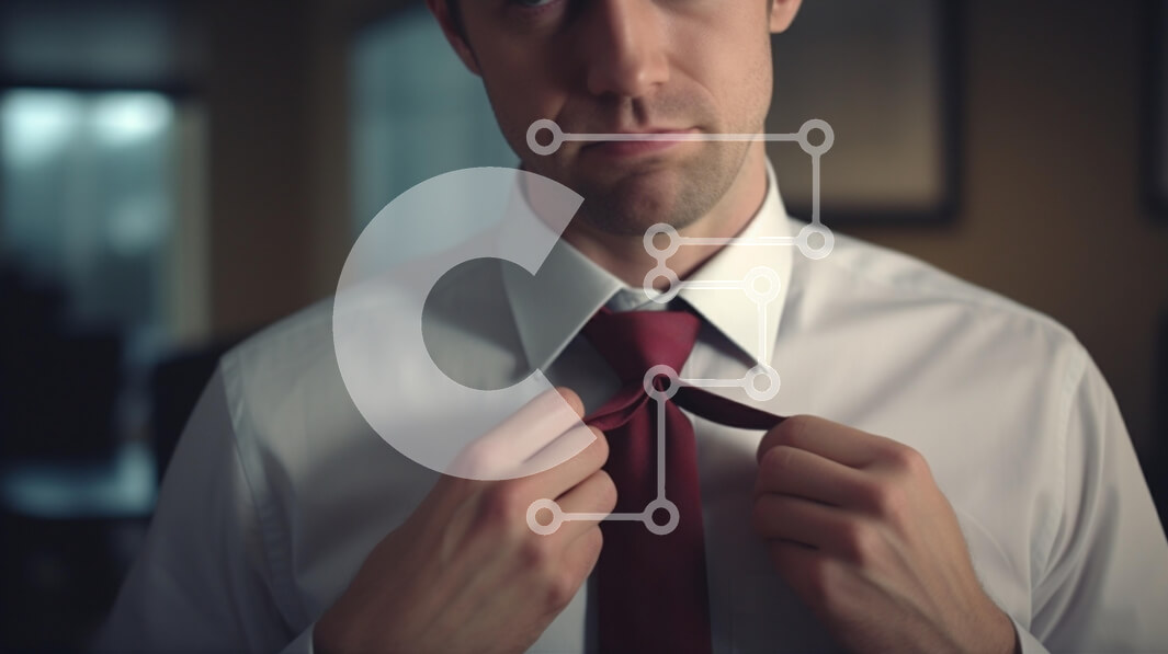 Intra Συλλεκτικό Ξύλινο Παζλ Plywood 4mm - Άνδρας που προσαρμόζει την κόκκινη γραβάτα σε ρύθμιση γραφείου Σε Ξύλινο Κουτί - Διαστάσεις Puzzle: 10x10 cm – 25 κομμάτια