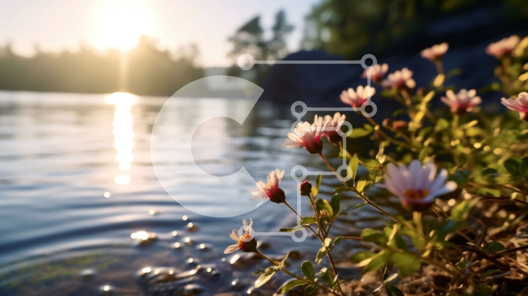 Intra Συλλεκτικό Ξύλινο Παζλ Plywood 4mm - Εκπληκτικό ηλιοβασίλεμα πάνω από μια λίμνη με ροζ λουλούδια στο προσκήνιο Σε Ξύλινο Κουτί - Διαστάσεις Puzzle: 10x10 cm – 25 κομμάτια