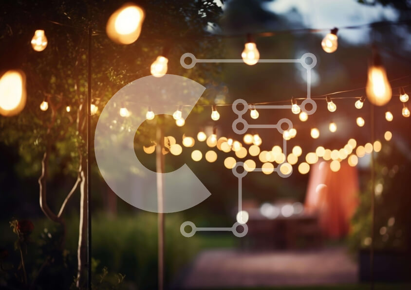 Intra Συλλεκτικό Ξύλινο Παζλ Plywood 4mm - Εξωτερική τραπεζαρία με φώτα χορδών Σε Ξύλινο Κουτί - Διαστάσεις Puzzle: 10x10 cm – 25 κομμάτια