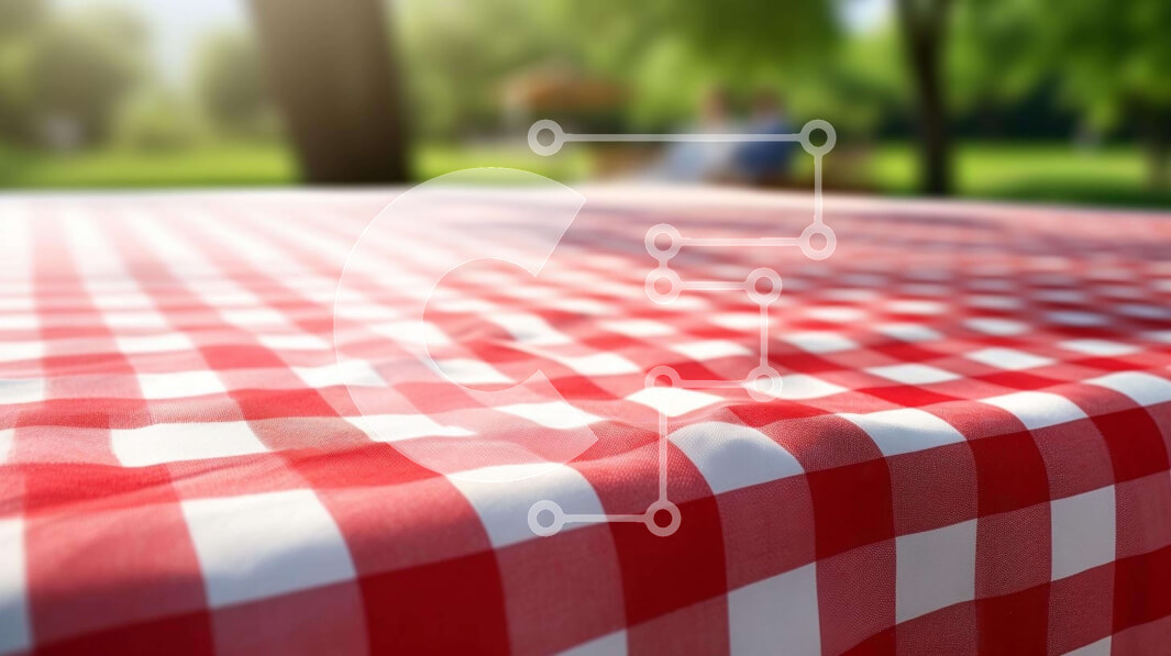 Intra Συλλεκτικό Ξύλινο Παζλ Plywood 4mm - Κόκκινο και άσπρο καρό τραπεζομάντιλο σε μια υπαίθρια εκδήλωση Σε Ξύλινο Κουτί - Διαστάσεις Puzzle: 10x10 cm – 25 κομμάτια