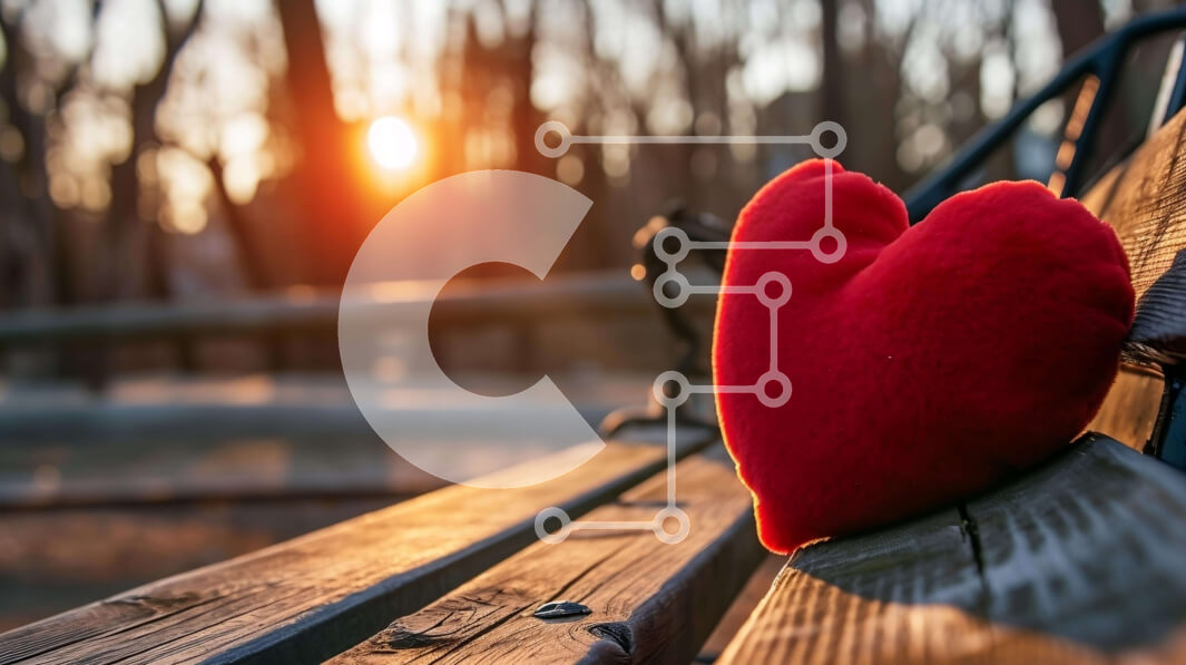 Intra Συλλεκτικό Ξύλινο Παζλ Plywood 4mm - Κόκκινο μαξιλάρι σε σχήμα καρδιάς στον πάγκο στο ηλιοβασίλεμα Σε Ξύλινο Κουτί - Διαστάσεις Puzzle: 10x10 cm – 25 κομμάτια