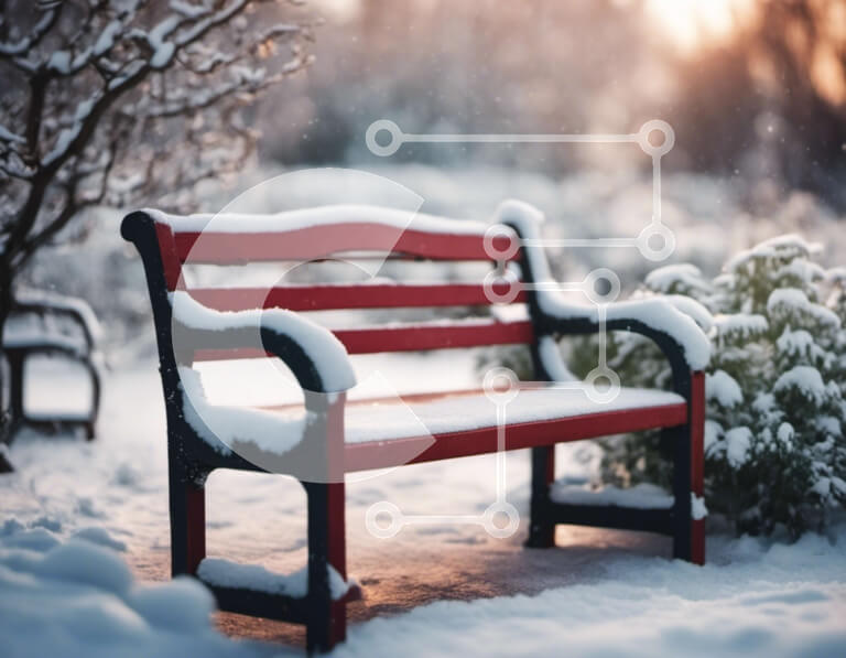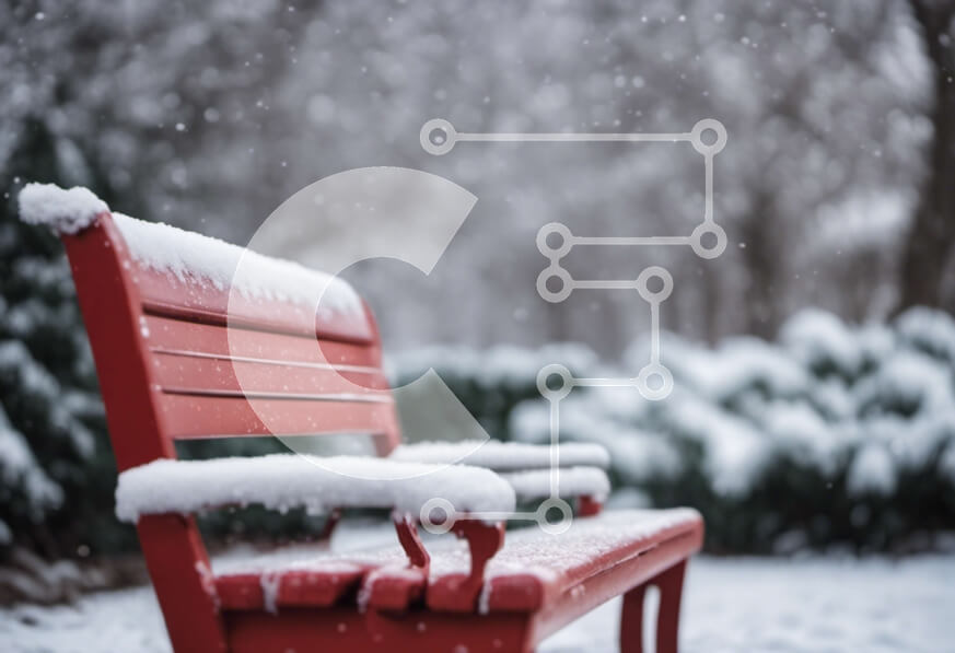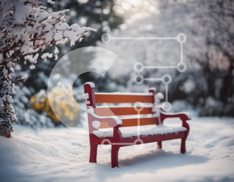 Intra Συλλεκτικό Ξύλινο Παζλ Plywood 4mm - Κόκκινος πάγκος πάρκου καλυμμένος με χιόνι Σε Ξύλινο Κουτί - Διαστάσεις Puzzle: 10x10 cm – 25 κομμάτια