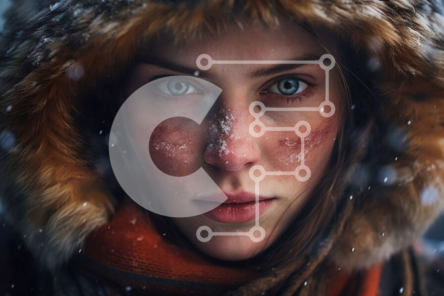Intra Συλλεκτικό Ξύλινο Παζλ Plywood 4mm - Κομψή γυναίκα που φορά μια γούνινη κουκούλα στο χιόνι Σε Ξύλινο Κουτί - Διαστάσεις Puzzle: 10x10 cm – 25 κομμάτια