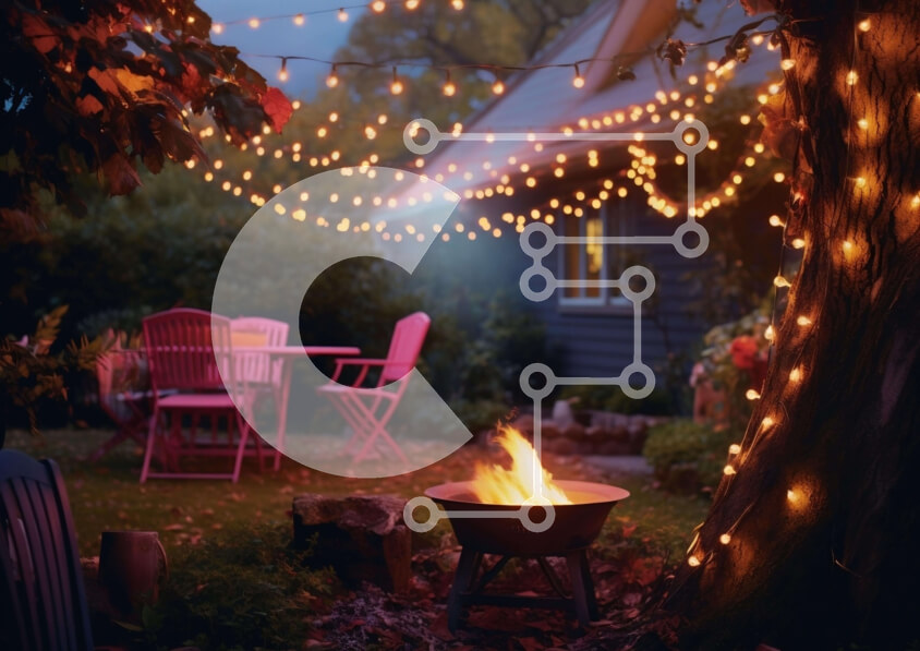 Intra Συλλεκτικό Ξύλινο Παζλ Plywood 4mm - Αίθριο πίσω αυλής με χάρτινα φανάρια και τζάκι εξωτερικού χώρου Σε Ξύλινο Κουτί - Διαστάσεις Puzzle: 10x10 cm – 25 κομμάτια
