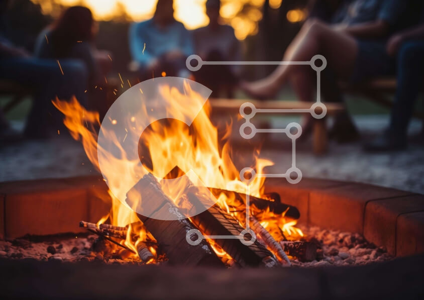 Intra Συλλεκτικό Ξύλινο Παζλ Plywood 4mm - Άνετη αυλή με λάκκο φωτιάς και ροζ καρέκλες Σε Ξύλινο Κουτί - Διαστάσεις Puzzle: 10x10 cm – 25 κομμάτια
