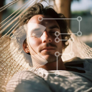 Intra Συλλεκτικό Ξύλινο Παζλ Plywood 4mm - Άνδρας με λευκό πουκάμισο και γυαλιά ηλίου ξαπλωμένος σε μια αιώρα στην παραλία Σε Ξύλινο Κουτί - Διαστάσεις Puzzle: 10x10 cm – 25 κομμάτια