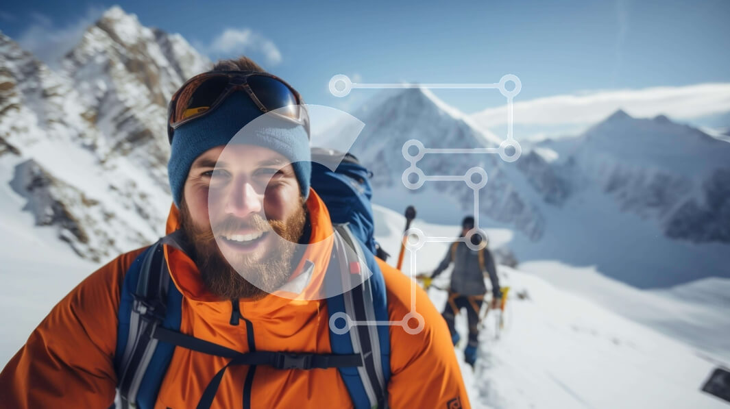 Intra Συλλεκτικό Ξύλινο Παζλ Plywood 4mm - Άνδρας που κάνει πεζοπορία στα χιονισμένα βουνά Σε Ξύλινο Κουτί - Διαστάσεις Puzzle: 10x10 cm – 25 κομμάτια