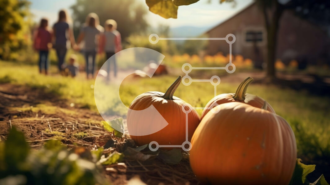 Intra Συλλεκτικό Ξύλινο Παζλ Plywood 4mm - Άνθρωποι που περπατούν μέσα από το πεδίο κολοκύθας μια ηλιόλουστη φθινοπωρινή ημέρα Σε Ξύλινο Κουτί - Διαστάσεις Puzzle: 10x10 cm – 25 κομμάτια