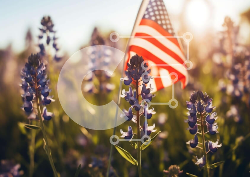 Intra Συλλεκτικό Ξύλινο Παζλ Plywood 4mm - Αμερικανική σημαία στο πεδίο των μωβ λουλουδιών Σε Ξύλινο Κουτί - Διαστάσεις Puzzle: 10x10 cm – 25 κομμάτια