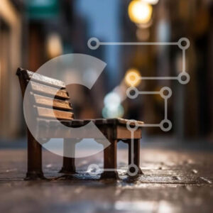 Intra Συλλεκτικό Ξύλινο Παζλ Plywood 4mm - Γραφική σκηνή από παλιό ξύλινο παγκάκι σε ένα πεζοδρόμιο σε μια πολυσύχναστη οδό της πόλης Σε Ξύλινο Κουτί - Διαστάσεις Puzzle: 10x10 cm – 25 κομμάτια