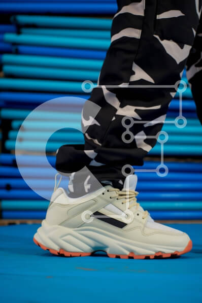 Intra Συλλεκτικό Ξύλινο Παζλ Plywood 4mm - Άτομο που φορά αθλητικά παπούτσια με σχέδια camo δίπλα σε σανίδες του σερφ σε μπλε σανίδες Σε Ξύλινο Κουτί - Διαστάσεις Puzzle: 10x10 cm – 25 κομμάτια