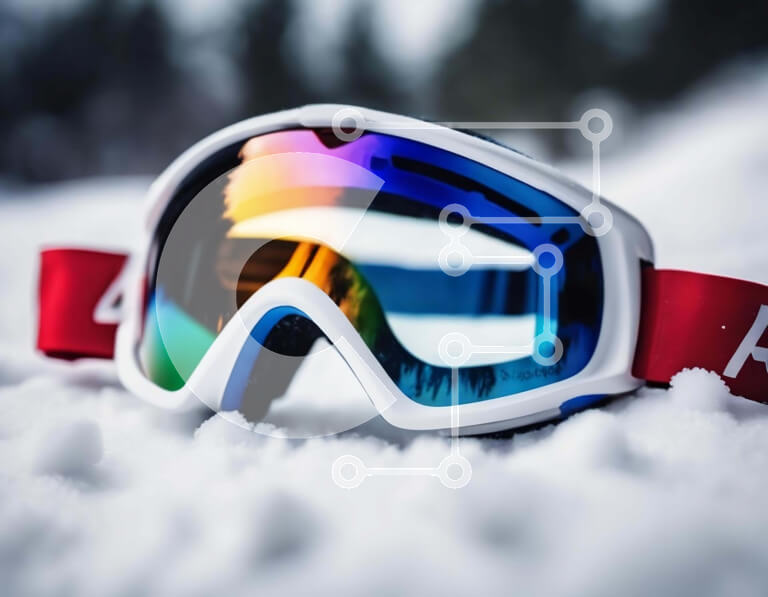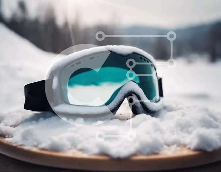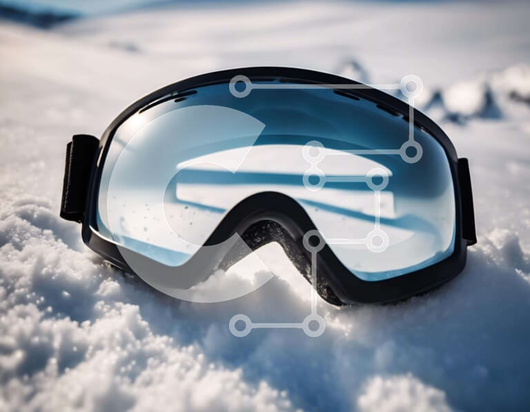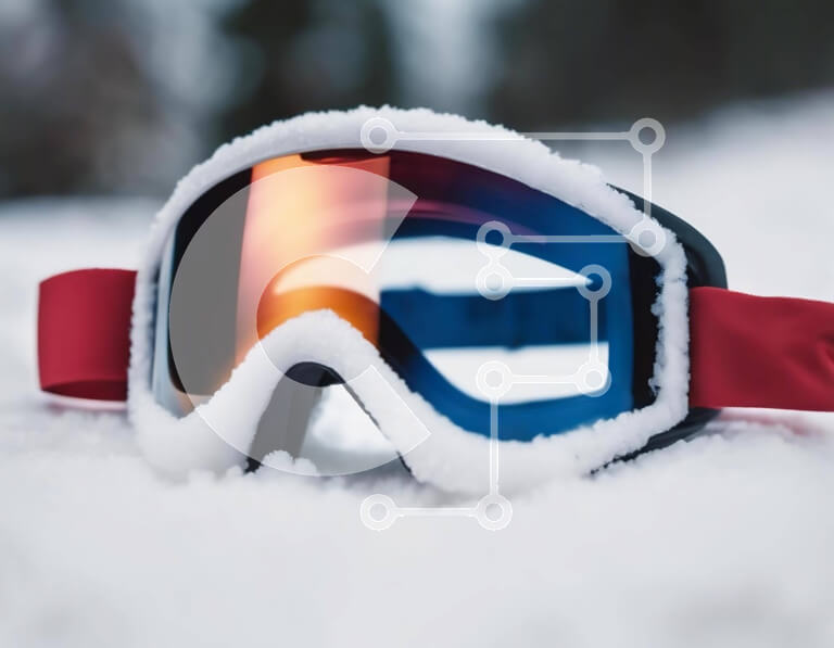 Intra Συλλεκτικό Ξύλινο Παζλ Plywood 4mm - Γυαλιά σκι με κόκκινο και μπλε φακούς στο χιόνι Σε Ξύλινο Κουτί - Διαστάσεις Puzzle: 10x10 cm – 25 κομμάτια