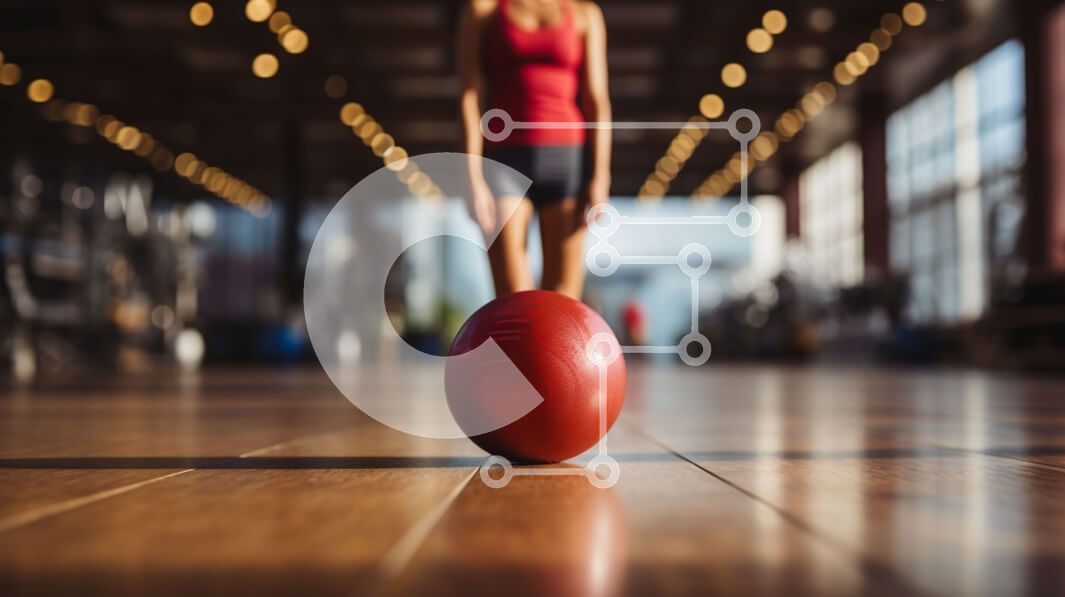 Intra Συλλεκτικό Ξύλινο Παζλ Plywood 4mm - Γυναίκα γυμναστικής που προπονείται στο γυμναστήριο στην κόκκινη μπάλα Σε Ξύλινο Κουτί - Διαστάσεις Puzzle: 10x10 cm – 25 κομμάτια
