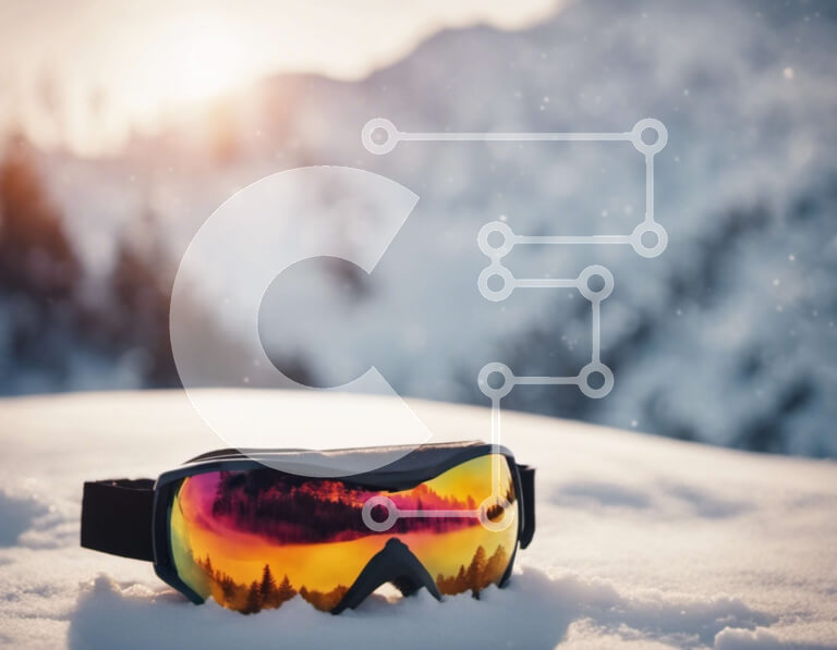 Intra Συλλεκτικό Ξύλινο Παζλ Plywood 4mm - Γυαλιά σκι με πολύχρωμους φακούς στο χιόνι Σε Ξύλινο Κουτί - Διαστάσεις Puzzle: 10x10 cm – 25 κομμάτια