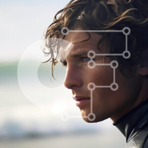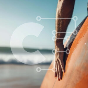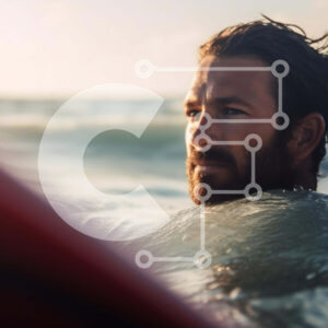 Intra Συλλεκτικό Ξύλινο Παζλ Plywood 4mm - Άνθρωπος με πορτοκαλί σανίδα του σερφ στην παραλία Σε Ξύλινο Κουτί - Διαστάσεις Puzzle: 10x10 cm – 25 κομμάτια