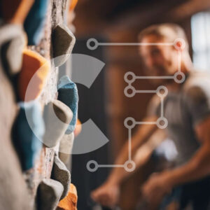 Intra Συλλεκτικό Ξύλινο Παζλ Plywood 4mm - Άνδρες που αναρριχούνται στον τοίχο αναρρίχησης βράχου στο εσωτερικό γυμναστήριο Σε Ξύλινο Κουτί - Διαστάσεις Puzzle: 10x10 cm – 25 κομμάτια