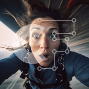 Intra Συλλεκτικό Ξύλινο Παζλ Plywood 4mm - Συναρπαστική εικόνα γυναίκας που κάνει αλεξίπτωτο με μπλε σακάκι και λουρί Σε Ξύλινο Κουτί - Διαστάσεις Puzzle: 10x10 cm – 25 κομμάτια