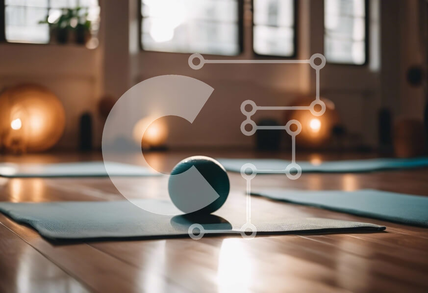 Intra Συλλεκτικό Ξύλινο Παζλ Plywood 4mm - Στούντιο γιόγκα με μπλε μπάλα γυμναστικής Σε Ξύλινο Κουτί - Διαστάσεις Puzzle: 10x10 cm – 25 κομμάτια