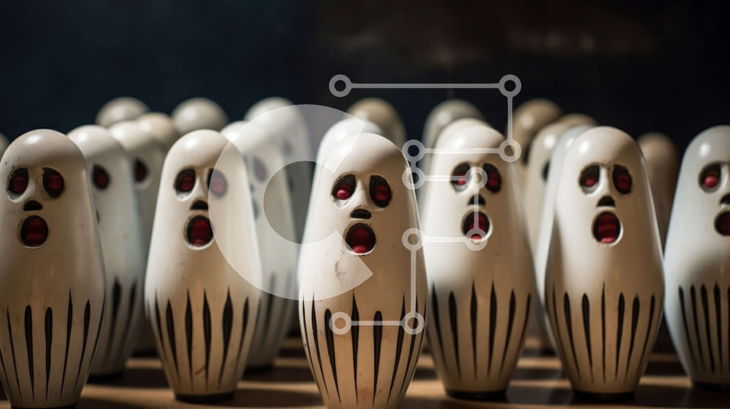 Intra Συλλεκτικό Ξύλινο Παζλ Plywood 4mm - Τρομακτικές καρφίτσες μπόουλινγκ με φανταστικά πρόσωπα Σε Ξύλινο Κουτί - Διαστάσεις Puzzle: 10x10 cm – 25 κομμάτια