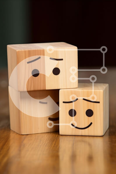 Intra Συλλεκτικό Ξύλινο Παζλ Plywood 4mm - Ξύλινοι μπλοκ με χαμογελαστά και θλιμμένα πρόσωπα Σε Ξύλινο Κουτί - Διαστάσεις Puzzle: 10x10 cm – 25 κομμάτια