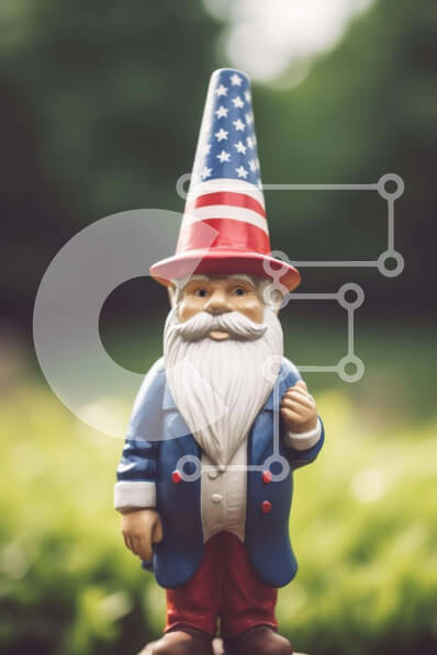 Intra Συλλεκτικό Ξύλινο Παζλ Plywood 4mm - Πατριωτικό ειδώλιο Gnome με ρούχα αμερικανικής σημαίας Σε Ξύλινο Κουτί - Διαστάσεις Puzzle: 10x10 cm – 25 κομμάτια