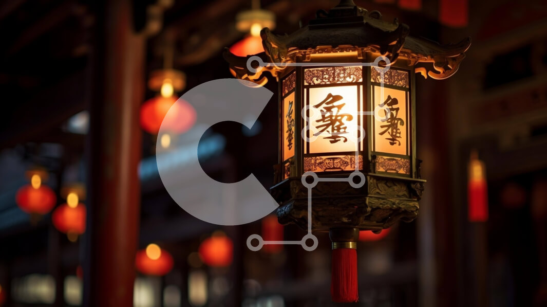 Intra Συλλεκτικό Ξύλινο Παζλ Plywood 4mm - Περίτεχνο κινέζικο φανάρι σε έναν σκοτεινό διάδρομο Σε Ξύλινο Κουτί - Διαστάσεις Puzzle: 10x10 cm – 25 κομμάτια