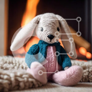 Intra Συλλεκτικό Ξύλινο Παζλ Plywood 4mm - Πλεκτό λαγουδάκι μπροστά στο τζάκι Σε Ξύλινο Κουτί - Διαστάσεις Puzzle: 10x10 cm – 25 κομμάτια