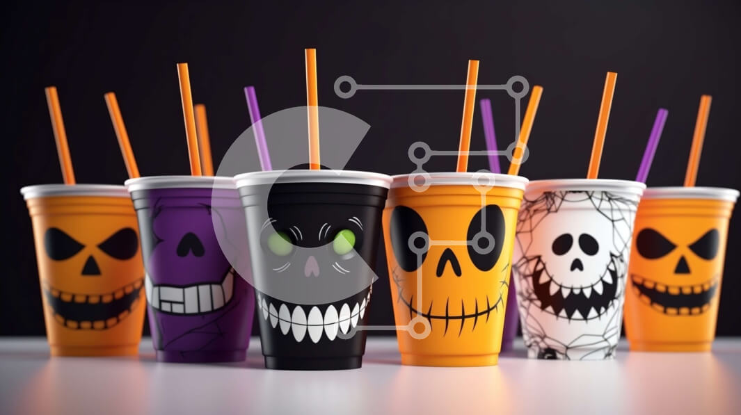Intra Συλλεκτικό Ξύλινο Παζλ Plywood 4mm - Πλαστικά ποτήρια με καλαμάκια με θέμα το Halloween Σε Ξύλινο Κουτί - Διαστάσεις Puzzle: 10x10 cm – 25 κομμάτια