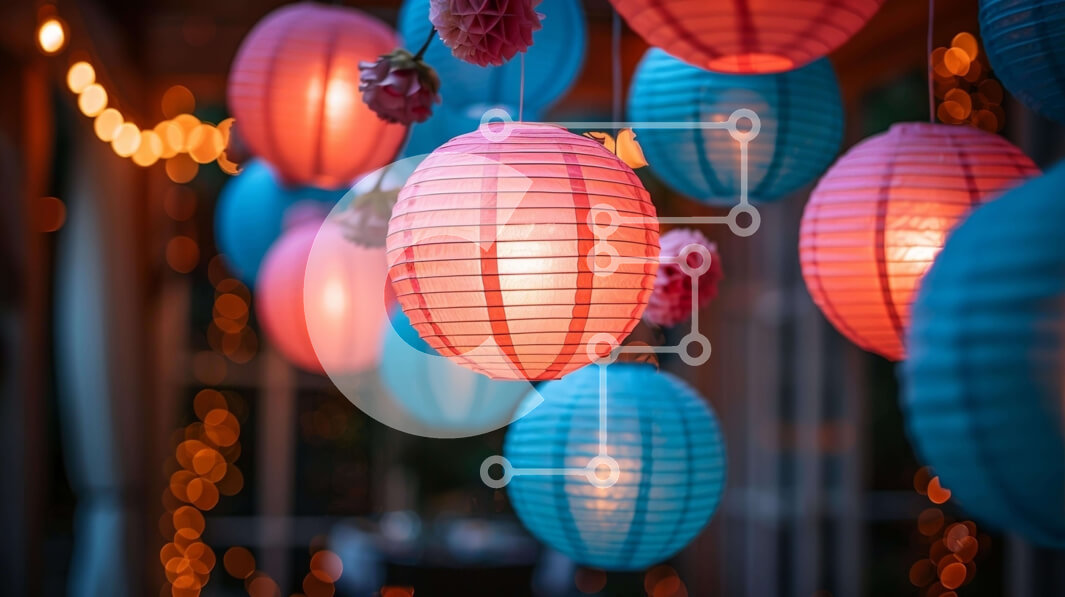 Intra Συλλεκτικό Ξύλινο Παζλ Plywood 4mm - Πολύχρωμα φανάρια και μπαλόνια από χαρτί Σε Ξύλινο Κουτί - Διαστάσεις Puzzle: 10x10 cm – 25 κομμάτια