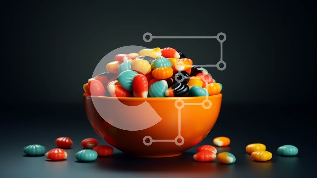 Intra Συλλεκτικό Ξύλινο Παζλ Plywood 4mm - Πολύχρωμα φασόλια καραμελών που ξεχύνονται από ένα μπολ Σε Ξύλινο Κουτί - Διαστάσεις Puzzle: 10x10 cm – 25 κομμάτια