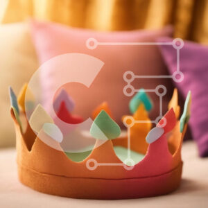 Intra Συλλεκτικό Ξύλινο Παζλ Plywood 4mm - Πολύχρωμο χάρτινο στέμμα στο κρεβάτι με κίτρινα και πορτοκαλί μαξιλάρια Σε Ξύλινο Κουτί - Διαστάσεις Puzzle: 10x10 cm – 25 κομμάτια