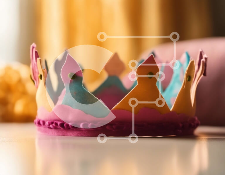 Intra Συλλεκτικό Ξύλινο Παζλ Plywood 4mm - Πολύχρωμο χειροποίητο στέμμα στο τραπέζι Σε Ξύλινο Κουτί - Διαστάσεις Puzzle: 10x10 cm – 25 κομμάτια