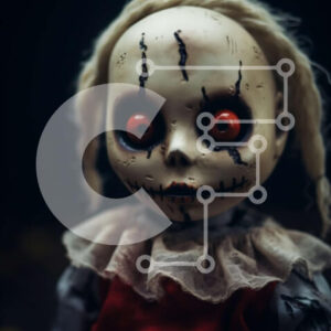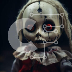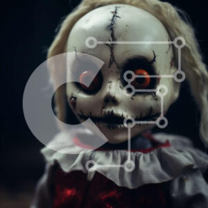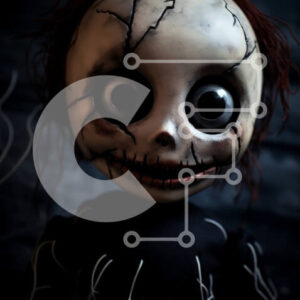 Intra Συλλεκτικό Ξύλινο Παζλ Plywood 4mm - Ανατριχιαστική κούκλα με μακριά μαλλιά και κόκκινα μάτια Σε Ξύλινο Κουτί - Διαστάσεις Puzzle: 10x10 cm – 25 κομμάτια
