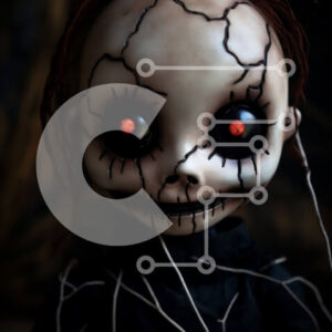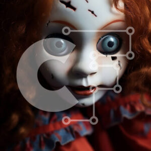 Intra Συλλεκτικό Ξύλινο Παζλ Plywood 4mm - Ανατριχιαστική κούκλα με κόκκινα μαλλιά και μπλε μάτια Σε Ξύλινο Κουτί - Διαστάσεις Puzzle: 10x10 cm – 25 κομμάτια