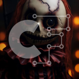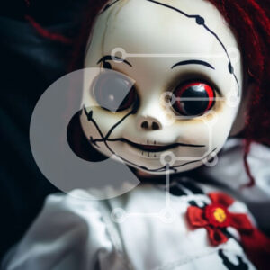 Intra Συλλεκτικό Ξύλινο Παζλ Plywood 4mm - Ανατριχιαστική κούκλα με κόκκινα μαλλιά και μαύρα μάτια Σε Ξύλινο Κουτί - Διαστάσεις Puzzle: 10x10 cm – 25 κομμάτια