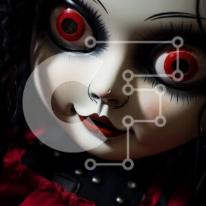 Intra Συλλεκτικό Ξύλινο Παζλ Plywood 4mm - Ανατριχιαστική κούκλα με μαύρα μαλλιά και κόκκινα μάτια Σε Ξύλινο Κουτί - Διαστάσεις Puzzle: 10x10 cm – 25 κομμάτια