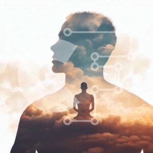 Intra Συλλεκτικό Ξύλινο Παζλ Plywood 4mm - Σιλουέτα διαλογισμός με επικάλυψη σύννεφων Σε Ξύλινο Κουτί - Διαστάσεις Puzzle: 10x10 cm – 25 κομμάτια